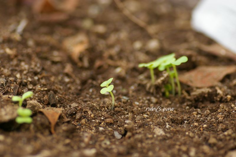 土曜日にまいたコカブとコマツナが順調に発芽しました。